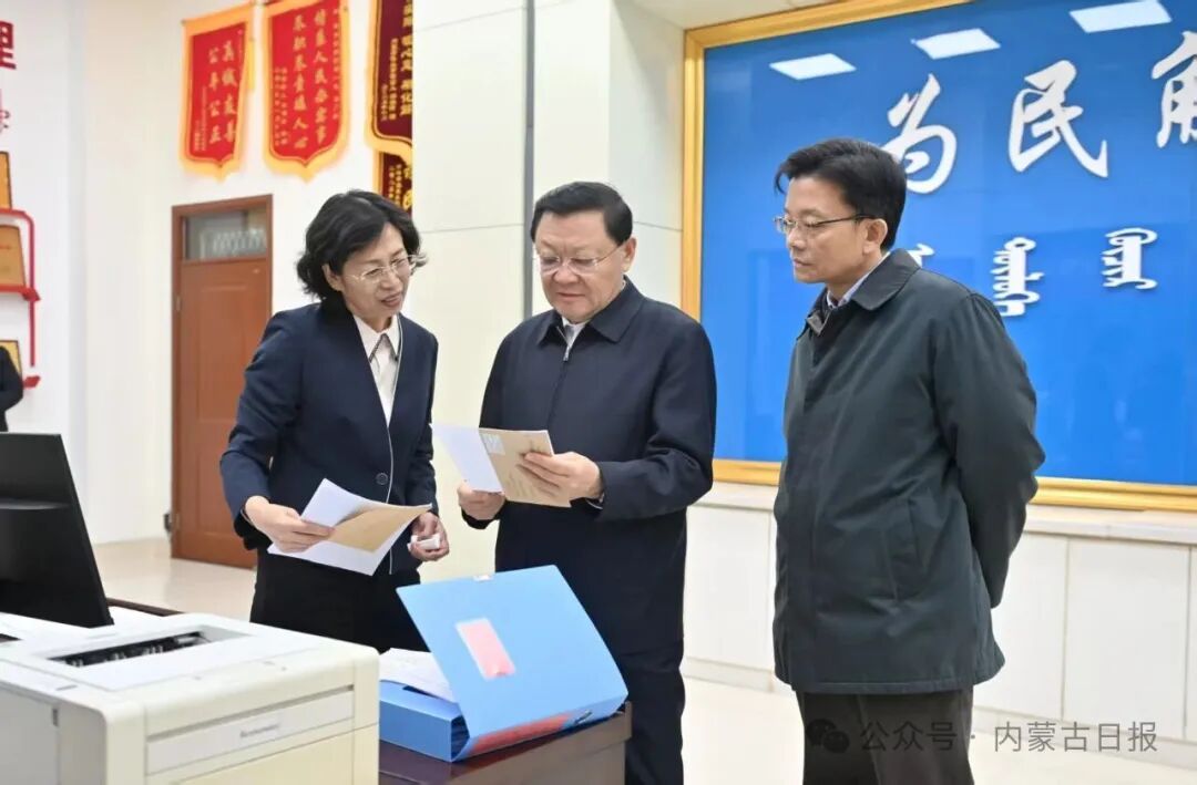 12月17日,自治區(qū)黨委書記王偉中走進(jìn)信訪接待大廳,聽取有關(guān)工作匯報(bào),了解群眾來(lái)訪接待和群眾來(lái)信辦理情況,并與一線信訪干部深入交流。草原云·內(nèi)蒙古新聞網(wǎng)記者 馬建兵 攝