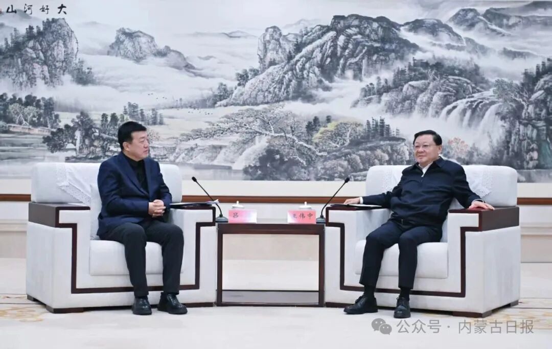 12月19日,自治區(qū)黨委書記王偉中,自治區(qū)黨委副書記、自治區(qū)人民政府主席包鋼在呼和浩特會見中國大唐集團有限公司董事長呂軍、總經(jīng)理李向良一行。
