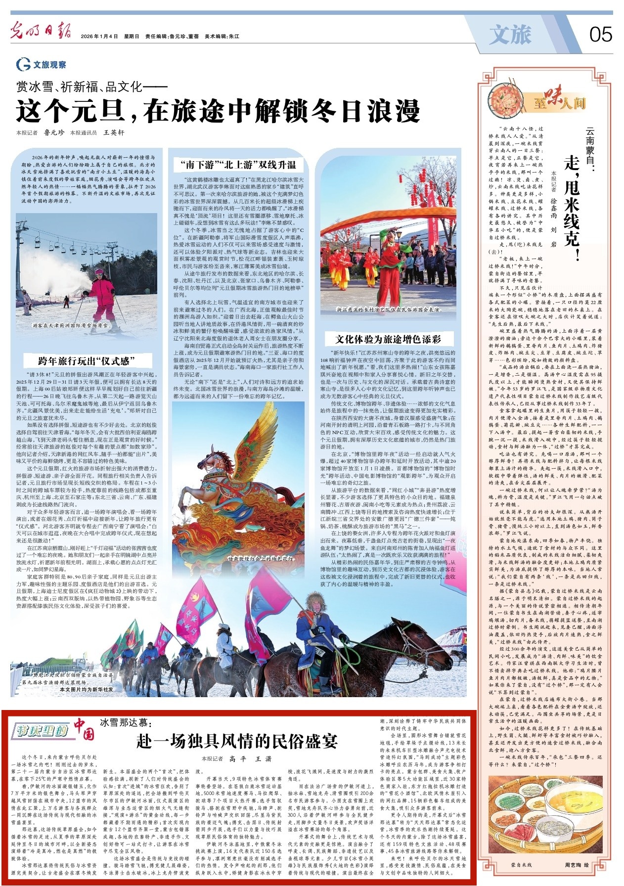 2026年1月4日,《光明日報》第5版刊發(fā)題為《冰雪那達慕:赴一場獨具風情的民俗盛宴》的文章,報道了第二十一屆內(nèi)蒙古自治區(qū)冰雪那達慕,在零下25℃的嚴寒中燃情舉辦,上萬名游客與各族群眾一同沉醉在這場傳統(tǒng)與現(xiàn)代相融的冰雪盛宴里。