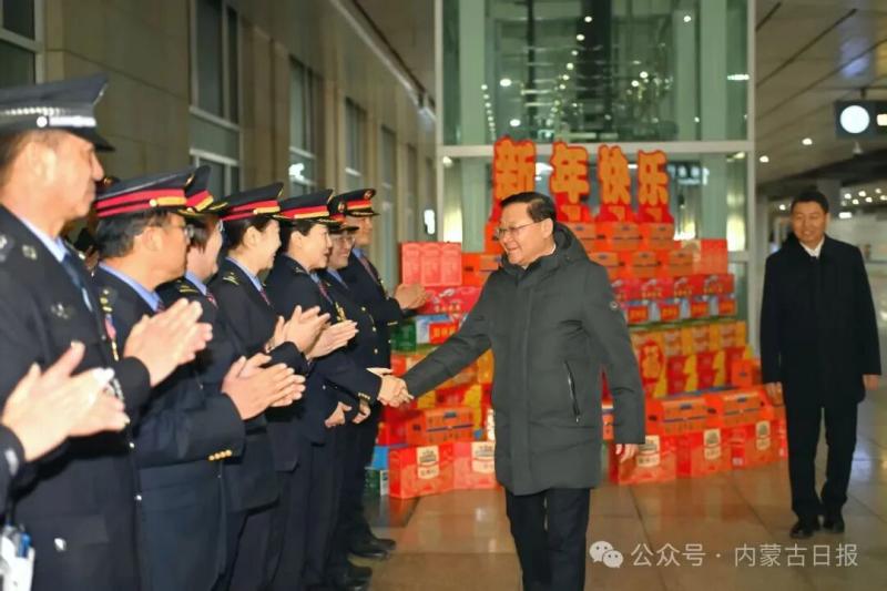 春節(jié)將至,首府的街頭張燈結(jié)彩,處處洋溢著喜慶祥和的節(jié)日氛圍。王偉中一行首先來到賽罕區(qū)一中隊交警執(zhí)勤崗點,親切慰問正在執(zhí)勤的民警,送上新春美好祝福,感謝大家的默默堅守和無私付出。王偉中叮囑大家注意防寒保暖,以良好狀態(tài)守護(hù)城市平安暢通。在萬正廣場環(huán)衛(wèi)站,王偉中一行看望慰問辛勤工作的環(huán)衛(wèi)工人。王偉中說,你們是城市的“美容師”,每天起早貪黑、風(fēng)雨無阻,用辛勤勞動換來了城市的清潔美麗,大家辛苦了。有關(guān)部門要多關(guān)心他們的工作和生活,細(xì)化關(guān)愛舉措,健全保障機(jī)制,在全社會營造尊重環(huán)衛(wèi)工人、珍愛生活環(huán)境的良好氛圍。隨后,王偉中一行來到呼和浩特火車東站,仔細(xì)詢問春運期間人流車流、安全保障等情況。王偉中強(qiáng)調(diào)要精準(zhǔn)把握春節(jié)群眾出行規(guī)律,加強(qiáng)運力調(diào)配、客流疏導(dǎo)和秩序維護(hù),深入排查整治安全隱患,切實提升服務(wù)質(zhì)量,讓群眾出行更安全、更舒心。