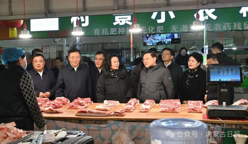 賽罕區(qū)寶全農(nóng)貿(mào)市場車水馬龍、年味十足,王偉中一行來到綜合交易大廳,與市場管理方、商戶、市民親切交流,了解商品產(chǎn)地、存儲、價格、運銷等情況。王偉中說,民以食為天,食以安為先,食品安全是天大的事。要加強(qiáng)節(jié)日期間食品安全全鏈條監(jiān)管,堅決落實“四個最嚴(yán)”要求,努力守好從田間到餐桌的每一道防線。要強(qiáng)化市場保供穩(wěn)價,做好米面糧油肉蛋奶果蔬等生活必需品的供應(yīng)保障,組織好各類促消費活動,更好滿足群眾節(jié)日消費需求。