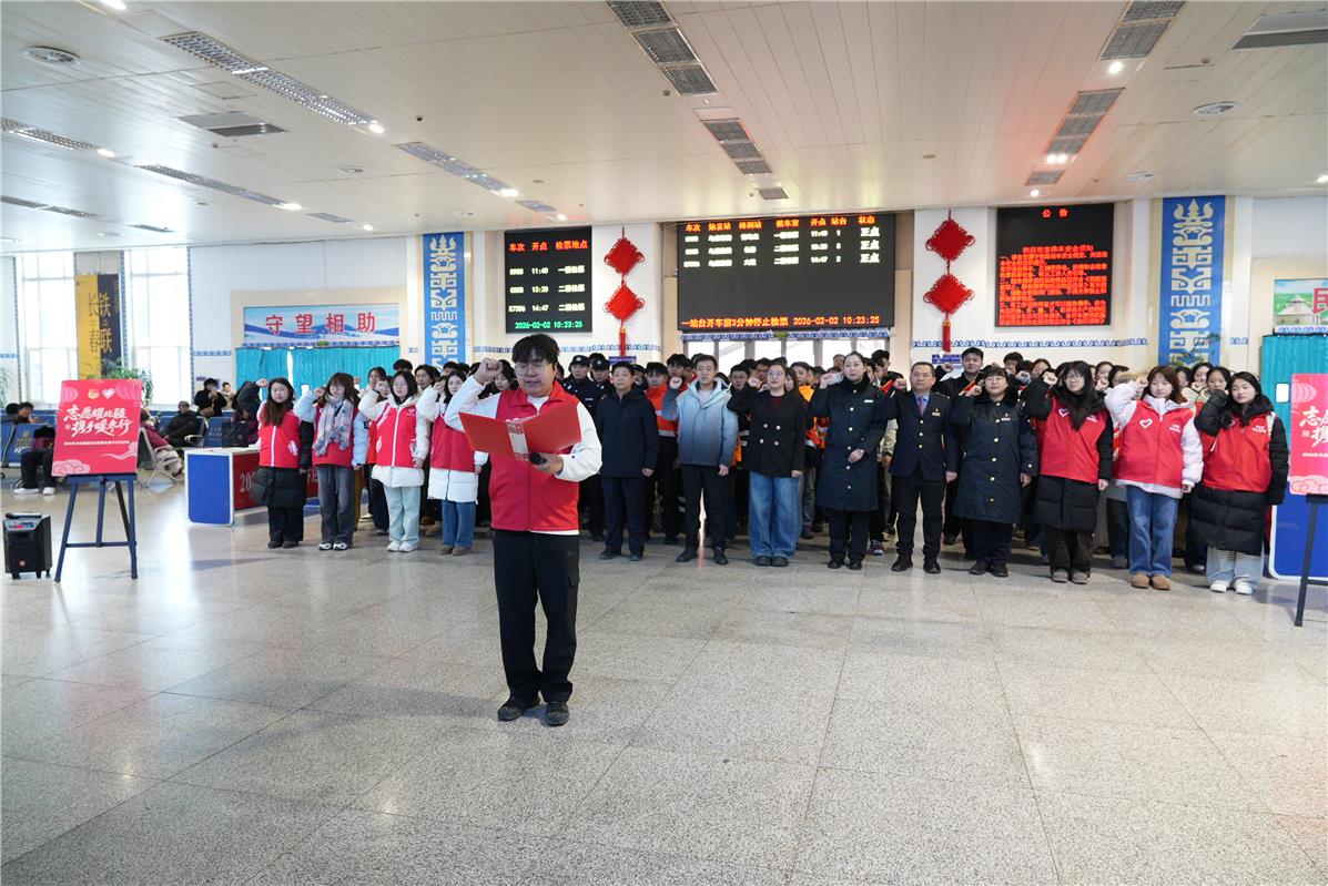 2月22日,正月初六。興安盟烏蘭浩特市剛落下一場(chǎng)春雪,戶(hù)外寒風(fēng)凜冽,烏蘭浩特火車(chē)站候車(chē)大廳里卻暖意融融。正值春節(jié)返程高峰,拎著行囊的旅客步履匆匆,十余名身著紅馬甲的青年志愿者穿梭在人群中,幫拎行李、引導(dǎo)進(jìn)站、答疑解惑,成了春運(yùn)人潮里最亮眼的一抹“志愿紅”。