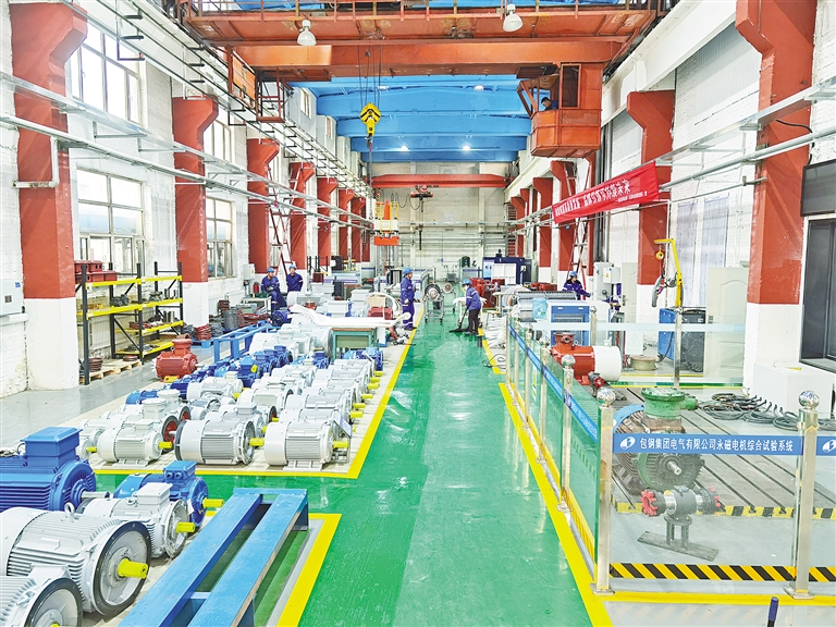 包鋼集團(tuán)電氣有限公司稀土永磁電機(jī)組裝車間。