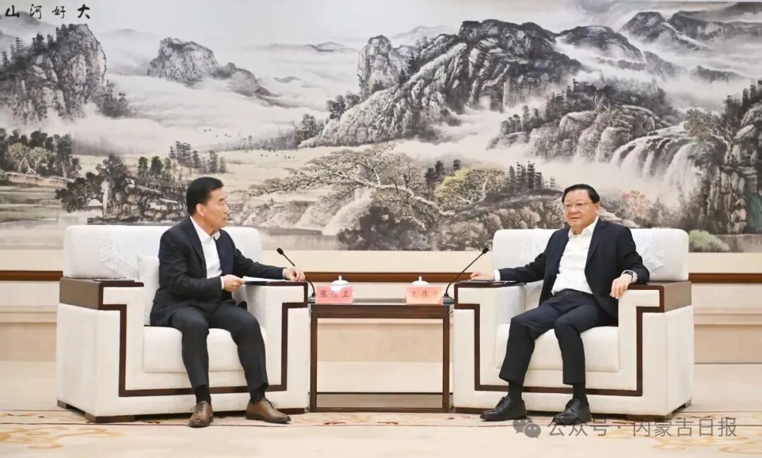 4月16日下午,自治區(qū)黨委書記、人大常委會(huì)主任王偉中在呼和浩特會(huì)見明陽新能源投資控股集團(tuán)有限公司黨委書記、董事長張傳衛(wèi)一行。草原云·內(nèi)蒙古新聞網(wǎng)記者