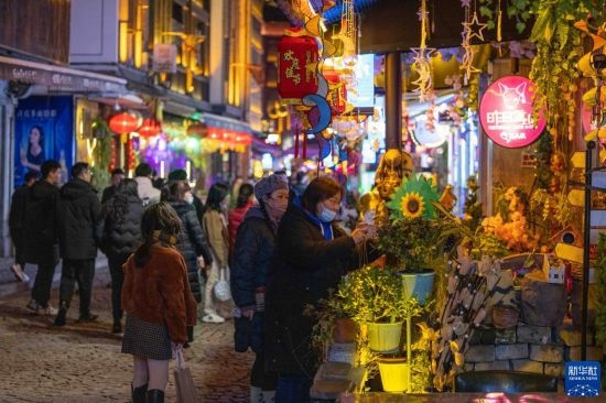 2月15日,游客在寧波老外灘步行街夜集市上挑選飾品。