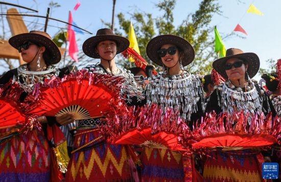 當(dāng)日,云南省德宏傣族景頗族自治州瑞麗市2023年目瑙縱歌節(jié)在位于中緬邊境的勐秀鄉(xiāng)戶瓦山寨開幕。