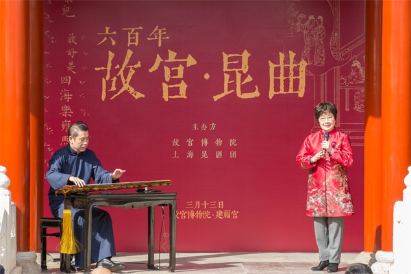 著名昆劇表演藝術(shù)家張靜嫻、古琴演奏家楊致儉共同表演《牡丹亭·尋夢》選段。故宮博物院供圖