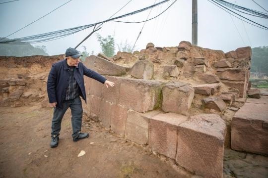 2月9日,在重慶合川釣魚(yú)城遺址,重慶市文物考古研究院副院長(zhǎng)袁東山在介紹新發(fā)掘出的位于類似闕臺(tái)建筑基址上的宋井。新華社記者 黃偉 攝