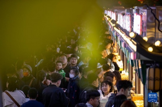 5月1日,游客在寧夏銀川市西夏區(qū)懷遠觀光夜市游覽。