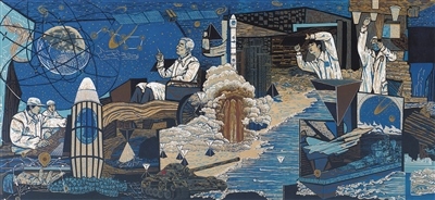 “大國重器”亮點紛呈,脫貧攻堅成就舉世矚目,這些時代新象都在展覽中得到體現。例如,張輝君油畫《蛟龍入海》、沙永匯版畫《北斗》等作品,折射出我國科技自主創(chuàng)新能力不斷提升??鬃现袊嫛陡瓯跒泛蛣⒃浦袊嫛睹利愢l(xiāng)村》,分別借助植樹造林的人物群像塑造、新農村景觀的宏闊描繪,展現了彪炳史冊的人間奇跡。
