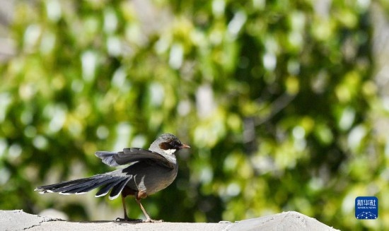這是在拉薩市城關區(qū)蔡公堂街道次角林村拍攝的灰腹噪鹛(5月14日攝)。
