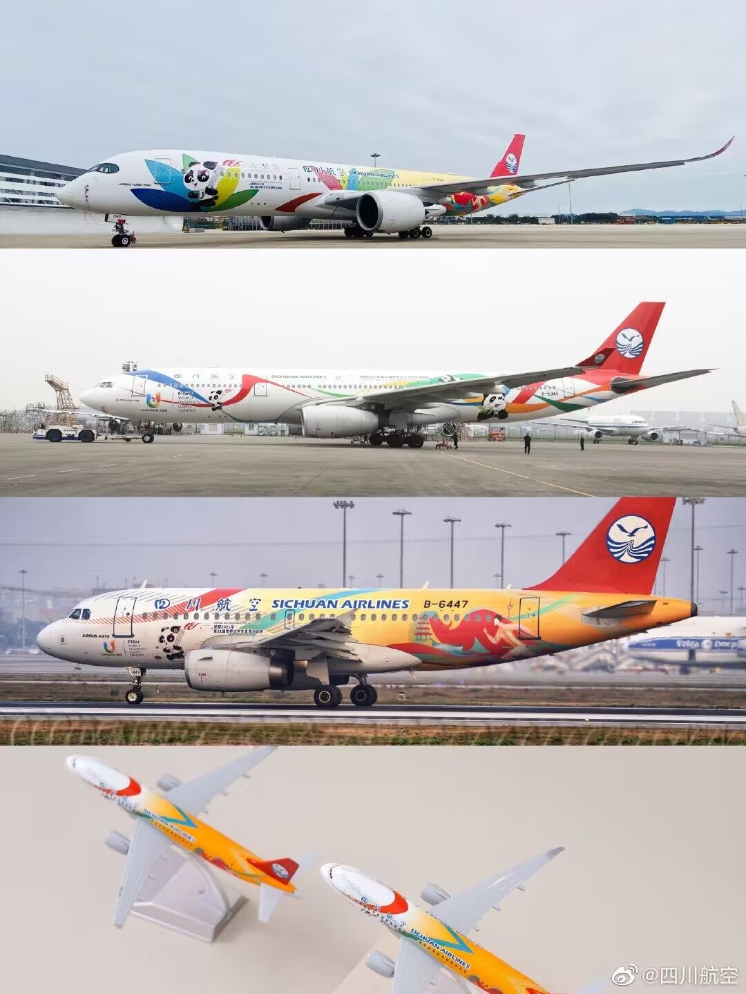 四川航空股份有限公司為成都大運(yùn)會(huì)量身打造的“大運(yùn)號(hào)”主題涂裝飛機(jī)。圖片來源:四川航空官方微博