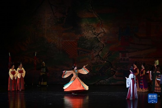 5月24日晚,演員在青海大劇院表演大型藏戲《金城公主》。