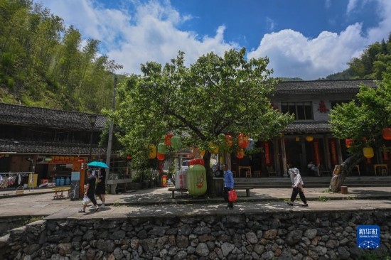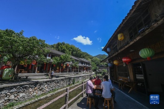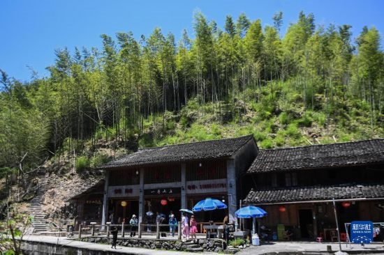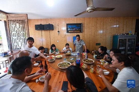 5月30日,游客在布袋坑村的農(nóng)家樂(lè)里用餐。