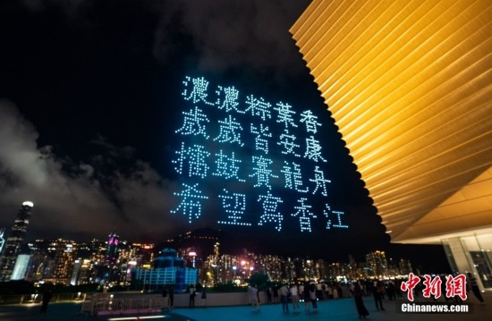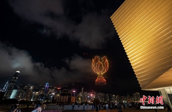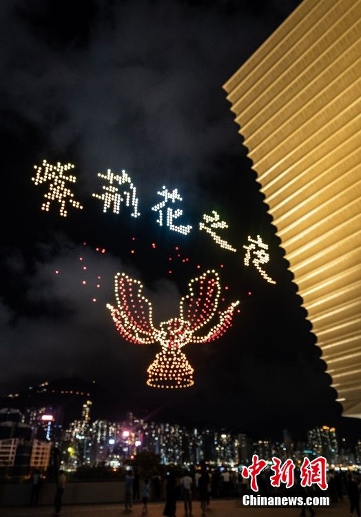 6月22日晚間,“紫荊花之夜”無人機燈光創(chuàng)意秀在香港故宮文化博物館畔的海面上空舉行,2000架無人機演繹多個與“端午節(jié)”相關(guān)的圖案,點亮香港夜空。