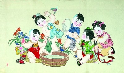 年畫《五子愛清潔》 張鸞
