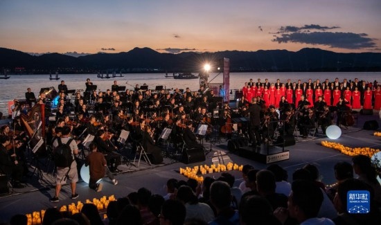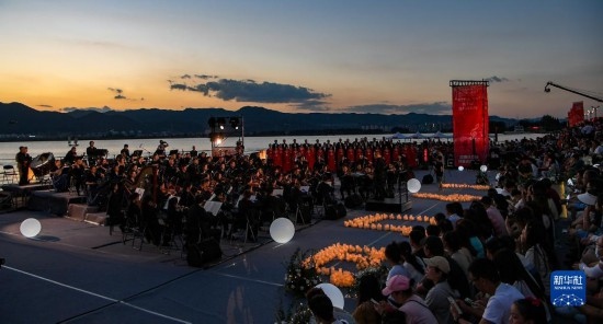 伴著晚霞,第七屆聶耳音樂周昆明分會(huì)場開幕式在滇池畔舉行(7月17日攝)。