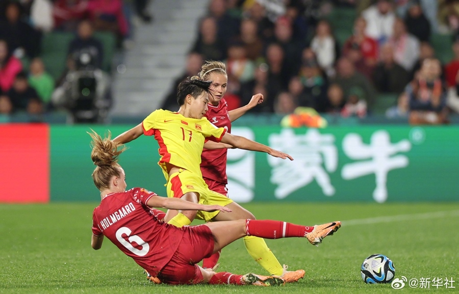 7月22日,2023女足世界杯小組賽D組首輪比賽中,中國女足0比1惜敗丹麥隊。(記者:樹文 高萌 肖世堯 牛夢彤 岳冉冉)