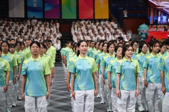 8月24日,杭州亞運(yùn)會(huì)、亞殘運(yùn)會(huì)賽會(huì)志愿者出征儀式在浙江大學(xué)紫金港校區(qū)體育館舉行。1800名賽會(huì)志愿者代表在儀式現(xiàn)場(chǎng)向全世界發(fā)出邀約——“來吧,朋友!”