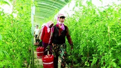 在涇源縣黃花鄉(xiāng)羊槽村,大棚種植番茄拓寬了農民致富路。洪旭東攝
