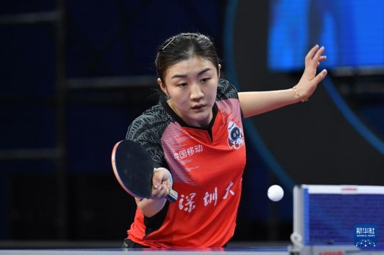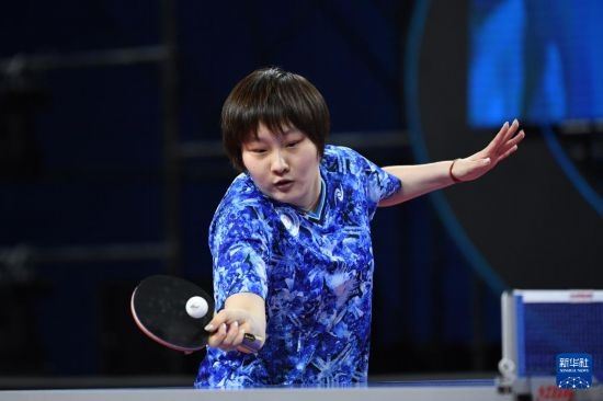 12月22日,深圳大學(xué)隊選手孫穎莎在女團半決賽中回球。她以3比0戰(zhàn)勝華東理工大學(xué)隊選手王藝迪。最終深圳大學(xué)隊以總比分3比1戰(zhàn)勝華東理工大學(xué)隊。新華社記者 梁旭 攝