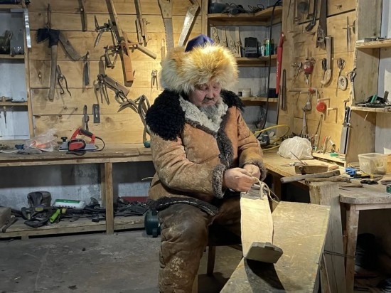 作坊墻面上,掛滿各式各樣的工具,這些都是斯蘭別克·沙和什從父親手中繼承來的。胡安什別克·斯蘭別克15歲時(shí)跟著父親學(xué)習(xí)這門技藝,剛開始連尺寸都掌握不好,還會(huì)不小心把樺木板掰斷。但憑借熱愛和堅(jiān)持,他現(xiàn)在制作的毛皮滑雪板和父親做得一樣好。