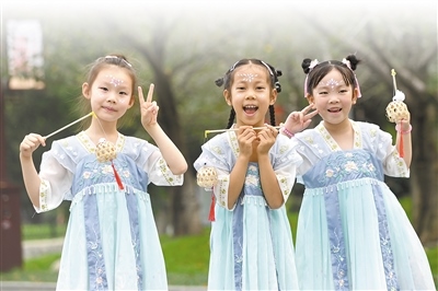 | 湖北省武漢市堤角公園,小朋友身穿漢服參加游園活動。周 超攝(影像中國) |