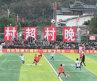“村超”是指由當(dāng)?shù)厝罕娮詣?chuàng)舉辦的“貴州榕江(三寶侗寨)和美鄉(xiāng)村足球超級(jí)聯(lián)賽”。2023年初,文化和旅游部下發(fā)文件,鼓勵(lì)各地開(kāi)展“四季村晚”活動(dòng)。