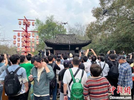 當(dāng)天,伴隨著美妙的音樂(lè),“十二花神”乘坐氦氣球沐風(fēng)而上“天女散花”,繽紛的花瓣隨風(fēng)飄灑,將象征著百花齊放、春滿(mǎn)人間的美好祝愿灑向人間。隨后,“十二花神”登上宋韻花船,沿著西溪濕地蜿蜒的河道緩緩巡游,唯美浪漫的畫(huà)面為游客獻(xiàn)上了一場(chǎng)視覺(jué)盛宴。