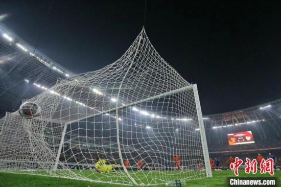 3月26日晚,在天津舉行的2026年國(guó)際足聯(lián)世界杯亞洲區(qū)預(yù)選賽36強(qiáng)賽C組比賽中,中國(guó)隊(duì)主場(chǎng)4比1戰(zhàn)勝新加坡隊(duì)。圖為中國(guó)隊(duì)球員費(fèi)南多在比賽中主罰點(diǎn)球破門。佟郁 攝