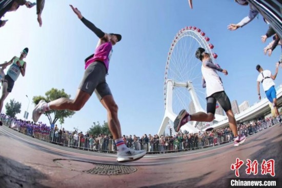 2023年10月,天津馬拉松時(shí)隔17年后重返市區(qū)進(jìn)行比賽,共吸引了29個(gè)國(guó)家和地區(qū)約9.5萬(wàn)人參與報(bào)名。途經(jīng)7個(gè)行政區(qū)的線路串聯(lián)起天津五大道、民園廣場(chǎng)、世紀(jì)鐘、天津之眼等諸多天津城市地標(biāo)型建筑和知名景點(diǎn),“驚艷”著來(lái)自世界各地的參賽選手。