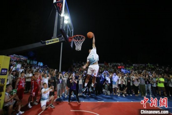 2023年8月2日晚,全國(guó)和美鄉(xiāng)村籃球大賽(村BA)東北賽區(qū)揭幕戰(zhàn)在天津市薊州區(qū)郭家溝村開賽。圖為比賽現(xiàn)場(chǎng)。佟郁 攝
