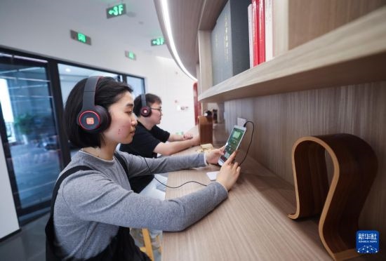 4月16日,在嘉興市南湖區(qū)新時代文明實踐中心,讀者依托數(shù)字化設備聽“有聲讀物”。