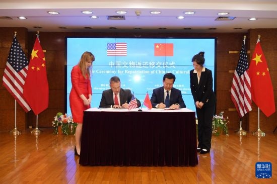 4月17日,在美國(guó)紐約中國(guó)駐紐約總領(lǐng)館,中美雙方代表出席中國(guó)流失文物藝術(shù)品返還移交儀式。