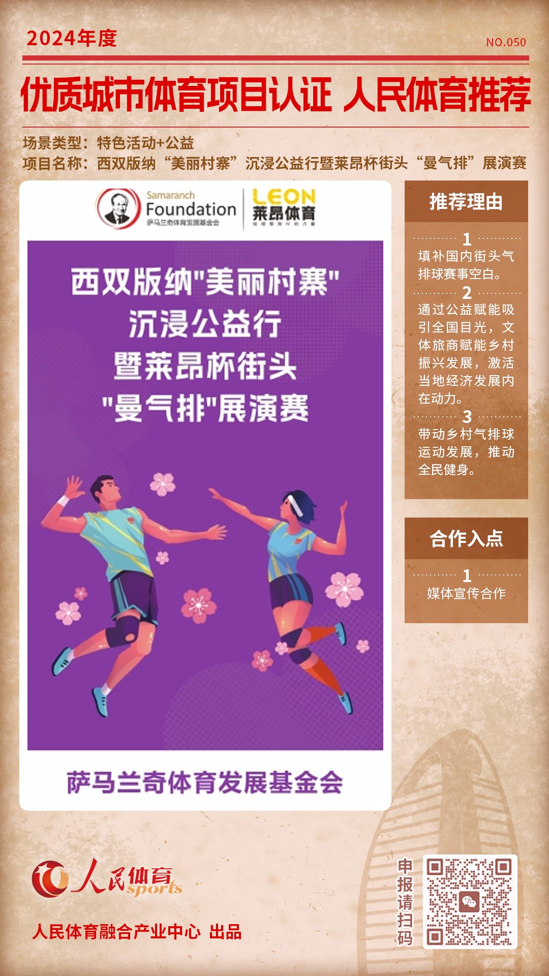 人民體育發(fā)起的“優(yōu)質(zhì)體育賽事及活動(dòng)認(rèn)證推薦計(jì)劃”,2024年04月推出第六批,共9個(gè)推薦項(xiàng)目。