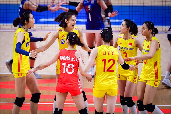 中國(guó)隊(duì)球員慶祝得分。圖片來源:國(guó)際排聯(lián)