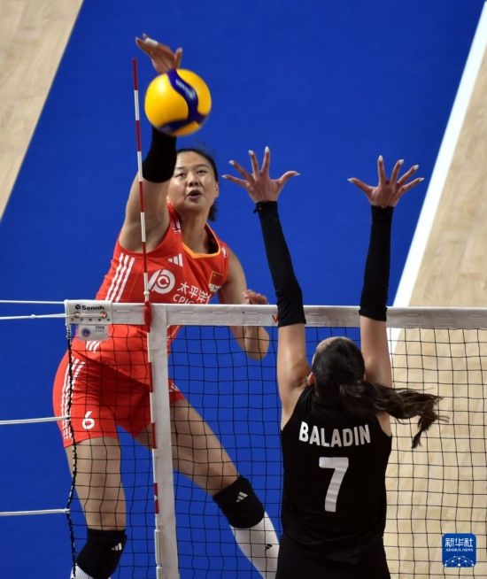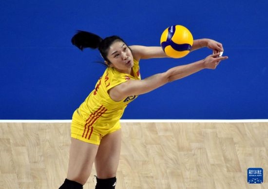 6月15日,中國隊球員王媛媛在比賽中扣球。新華社記者盧炳輝攝