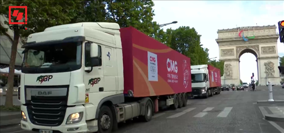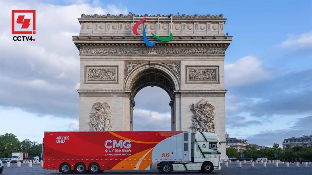 中央廣播電視總臺“中國紅”8K超高清轉(zhuǎn)播車,歷經(jīng)近2個月的旅程,在當?shù)貢r間7月16日,終于抵達巴黎法蘭西體育場。行駛途中,“中國紅”一路經(jīng)過凱旋門、埃菲爾鐵塔等巴黎地標性建筑,引發(fā)當?shù)孛癖姎g呼贊嘆。