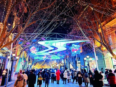 充滿節(jié)日氛圍的哈爾濱中央大街。
