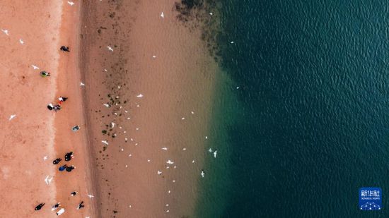 1月12日,游客在撫仙湖邊游玩(無人機照片)。