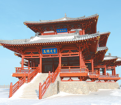 撫遠市觀看日出的熱門景點“東極閣”。