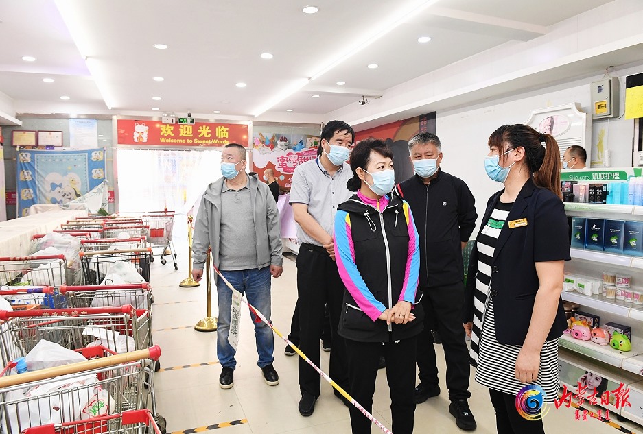 蒙客隆超市是疫情期間全市117個保供超市之一。王莉霞走進超市,詳細了解商品供應、物資配送等具體情況。她說,要保證貨源充足,劃小配送單元,跟進社區(qū)管理配套,建立定點供應機制,全方位服務保障群眾日常生活。