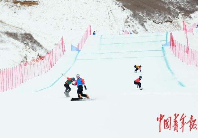 2月20日,單板滑雪公開組障礙追逐混合團(tuán)體賽中,貴州隊(duì)王會(huì)楊率先沖過(guò)終點(diǎn)。中青報(bào)·中青網(wǎng)記者 石佳/攝