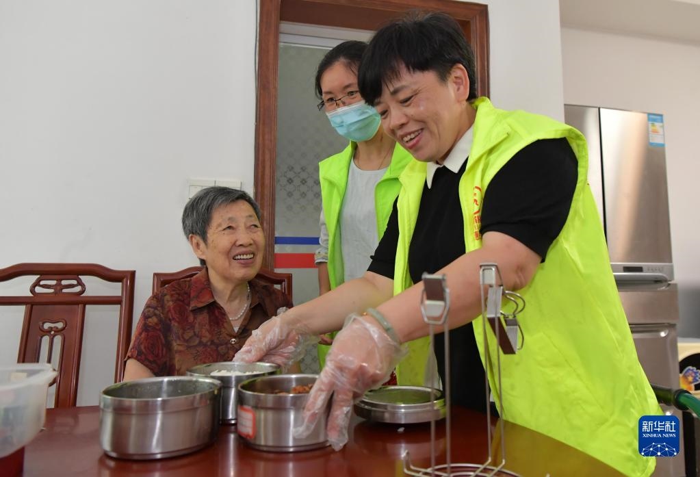 在江西省南昌市東湖區(qū)彭家橋街道文教路北社區(qū),“幸福食堂”的義工在給社區(qū)內(nèi)出行困難的老人提供送餐服務(2020年7月29日攝)。從2018年12月起,南昌市東湖區(qū)彭家橋街道在社區(qū)打造以黨建引領、社區(qū)主導、愛心企業(yè)贊助的“幸福食堂”,專門為社區(qū)獨居、孤寡及生活困難的老年人提供營養(yǎng)餐,以此進一步完善社區(qū)居家互助養(yǎng)老服務。新華社記者 彭昭之 攝