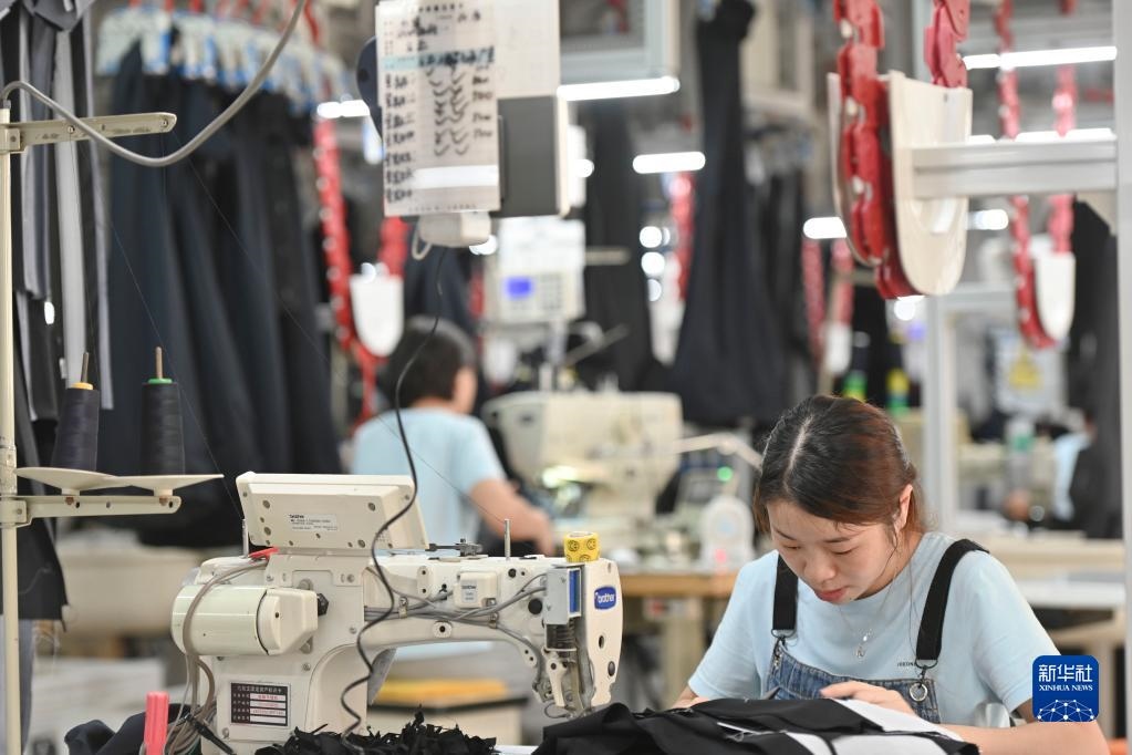 在位于福建省泉州市經(jīng)濟技術開發(fā)區(qū)的九牧王西褲智能化生產(chǎn)車間,工人在自動化西褲吊掛流水線上作業(yè)(2021年7月30日攝)。近年來,泉州市稅務部門積極落實減稅降費,出臺一系列穩(wěn)定工業(yè)、扶持外貿(mào)、鼓勵企業(yè)研發(fā)創(chuàng)新的政策,服務實體經(jīng)濟發(fā)展。新華社記者 宋為偉 攝
