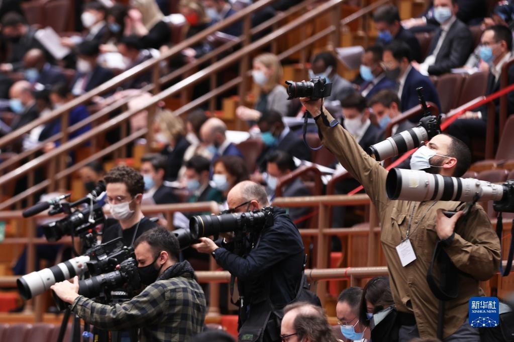 3月5日,第十三屆全國人民代表大會第五次會議在北京人民大會堂開幕。這是記者在采訪。