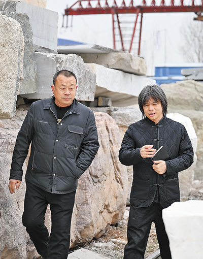 近日,全國(guó)政協(xié)委員、河北翰鼎雕塑集團(tuán)首席技師高英坡(右)圍繞傳統(tǒng)工藝項(xiàng)目保護(hù)開(kāi)展調(diào)研。