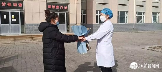 下午3點(diǎn),患者王某走出隔離病房,醫(yī)務(wù)人員將鮮花送到她手中,并和她合影留念,她的精神狀態(tài)看上去不錯(cuò)。