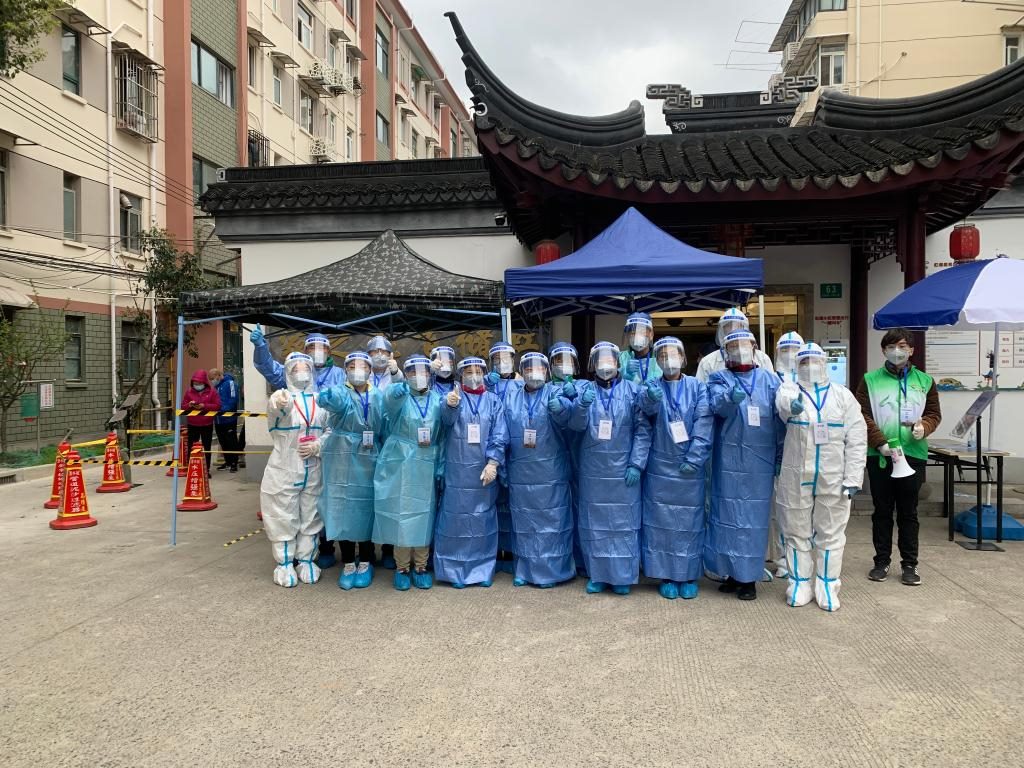 虹儲居民區(qū)核酸檢測采樣點,黨員干部、醫(yī)務(wù)工作者以及來自各行各業(yè)的志愿者共同抗疫。受訪單位供圖