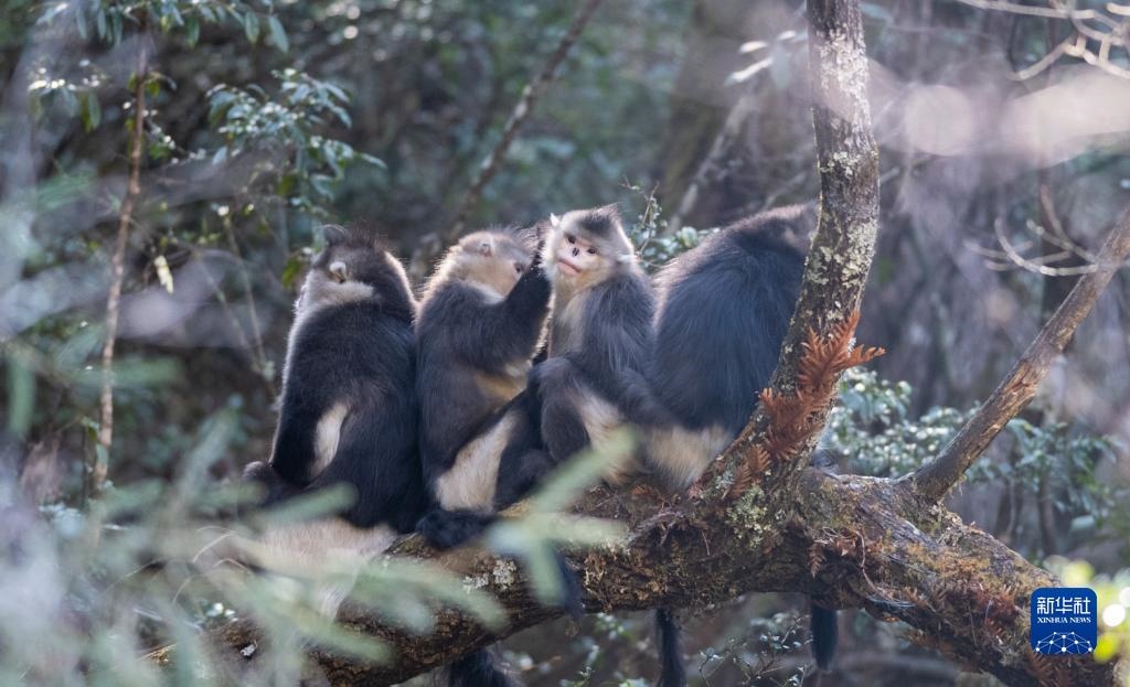 這是在云南白馬雪山國(guó)家級(jí)自然保護(hù)區(qū)內(nèi)拍攝的滇金絲猴(3月13日攝)。新華社記者 王冠森 攝